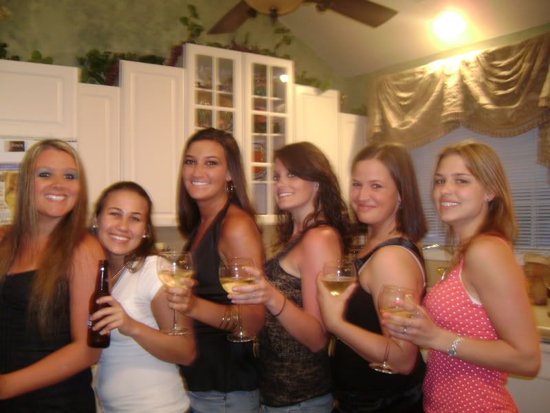 After a long day in the sun, we had a major grub out! I made some delicious cheeseburgers, steamed shrimp, pasta salad and washed it all down with Jose, Korbel and Bud...nice combination, I know. Haha. After we got all fat and happy we headed out of colington and to Jordan's to "pre-game". We got a nice "buzz" and headed to Barefoot's where we met Krista, Jed, Anthony and Jordan. Gooooood times!